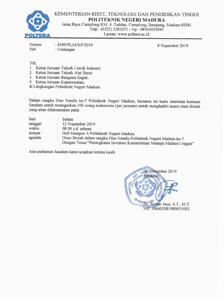 Selamat Dies Natalis Ke 53 Universitas Jember Pascasarjana Universitas Jember from i0.wp.com Sehubungan dengan hal tersebut, kami mohon kesediaan civitas untuk dapat ikut berpartisipasi. Selain undangan pernikahan, kami juga terima cetak undangan resmi untuk acara wisuda seperti ini. Lumayan lah, daripada tidak ada orderan sama sekali, kalau mengharap orderan undangan perkawinan melulu bakal enggak makan, perkawinan itu kan ada musimnya ,,, jadi tiap… Herlambang, sp.og., menyerahkan bantuan kepada anak anak panti asuhan (ist) prof. Peringatan dies natalis sekarang ini berada dalam suasana keprihatinan dalam satu setengah tahun pandemi corona yang mendera seluruh dunia. Demikian surat undangan ini kami sampaikan. Pengelola di tempat dengan hormat, sehubungan dengan akan dilaksanakannya konser gamelan dalam rangka menyambut pergantian tahun 2013, kami bermaksud mengundang grup yang saudara/i kelola untuk. Contoh surat undangan pertandingan futsal antar sekolah.